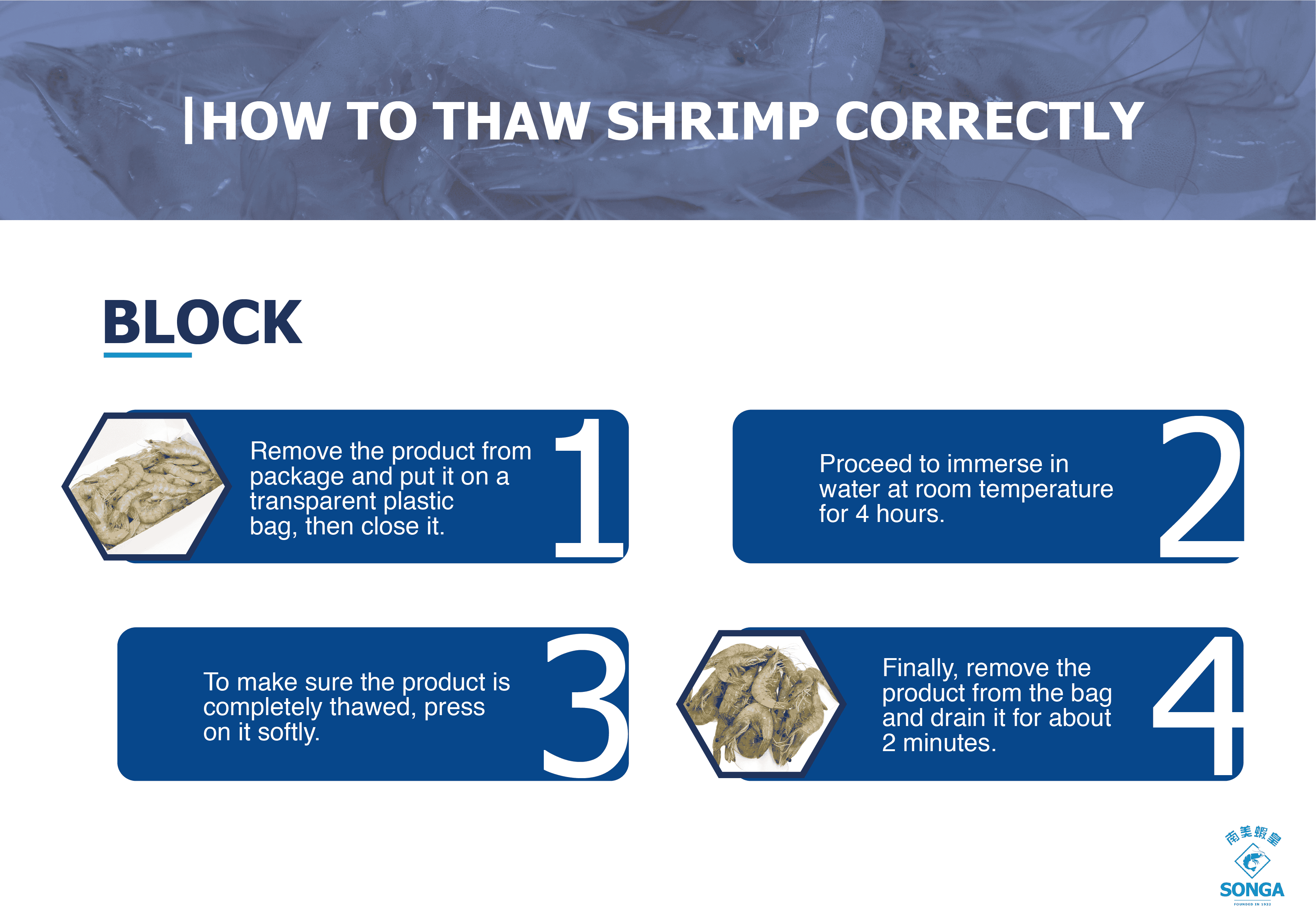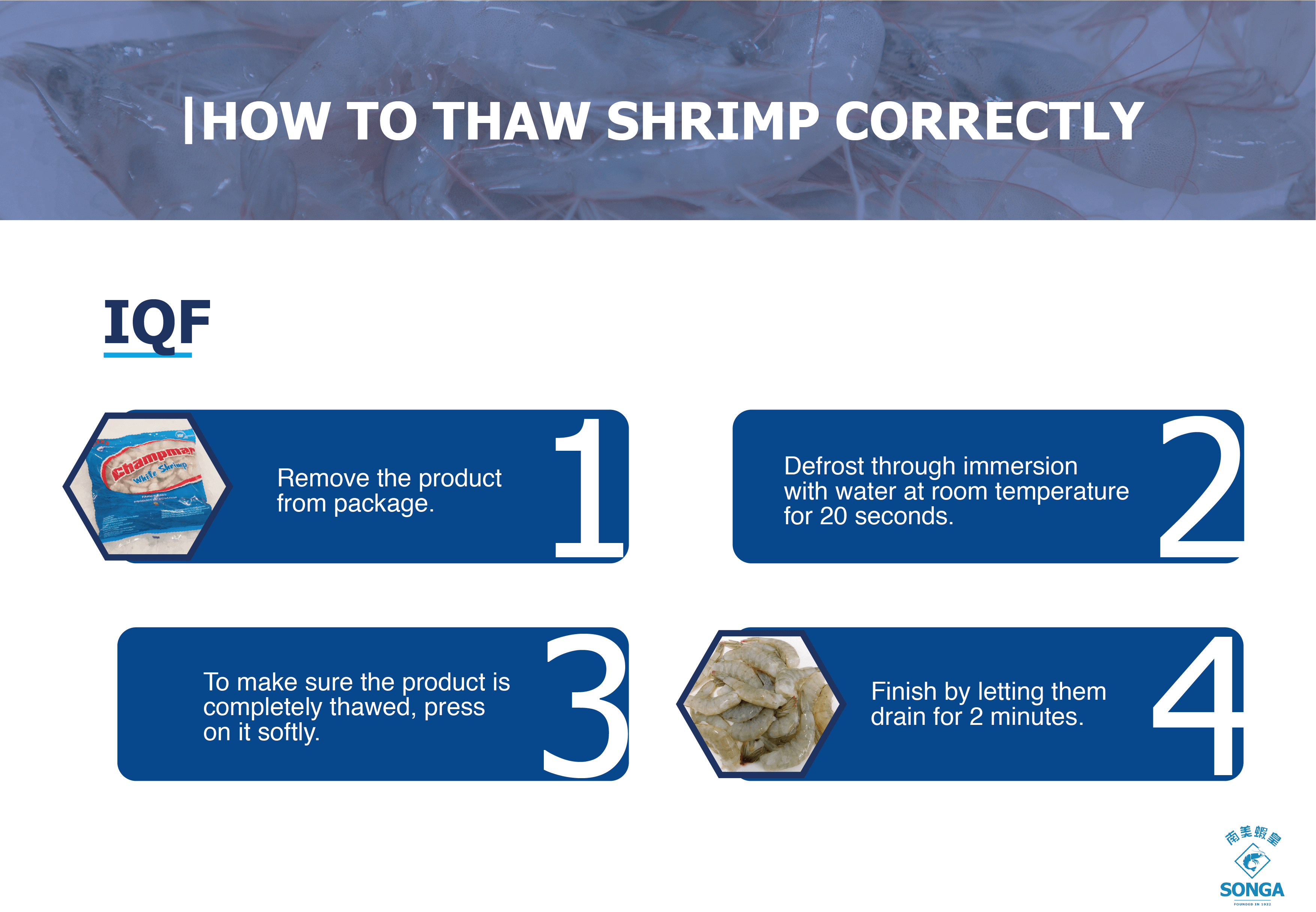 Our shrimp is professionally and technically harvested and transported to the processing plant in isothermal bins that allow the shrimp to be kept at 4 degrees Celsius or less while maintaining its freshness and quality.