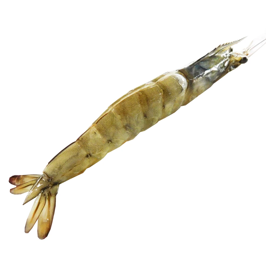 Se mantiene la cabeza del camarón, se hace un pequeño corte en la parte superior del lomo para retirar la vena. Finalmente es congelado para su exportación.